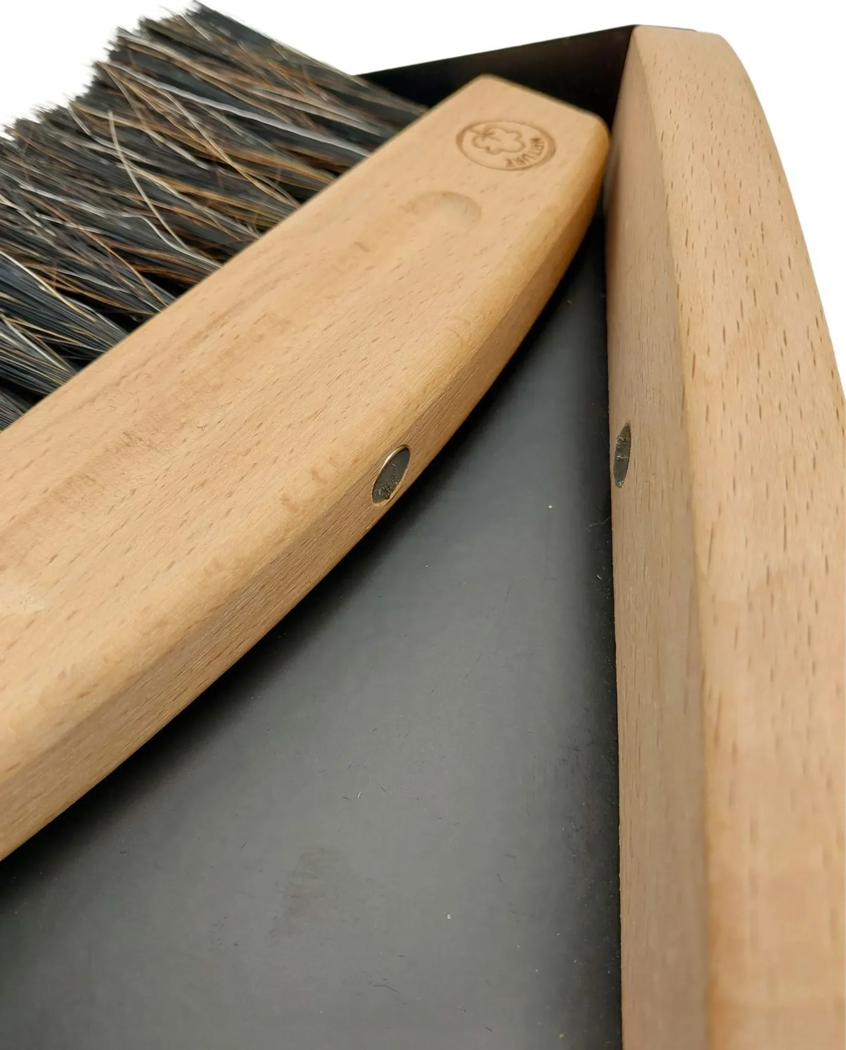 Highlights: Pferdeborsten für feinen Staub, magnetisches Kehrblech, natürliches Buchenholz, ergonomische Handhabung, dekorativ und funktional.